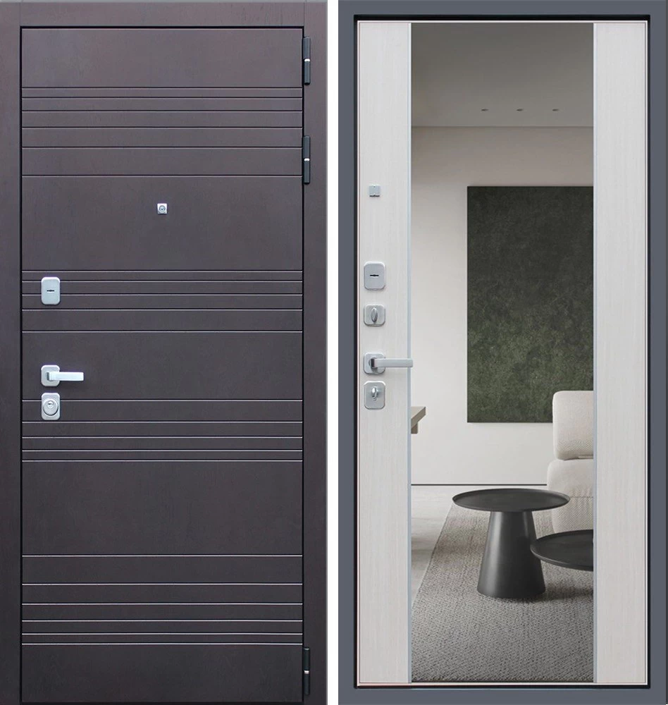Надежная входная Дверь Дуэт с зеркалом премиум класса по цене 49 352 руб. Большая толщина стали защитит от проникновения в ваш дом, квартиру или коттедж. Используется очень качественная фурнитура: замки, цилиндры, ручки, защелки. Покрытие и отделка двери изготовлено под внимательным контролем производителя. Дверь имеет долгий срок службы и гарантию.